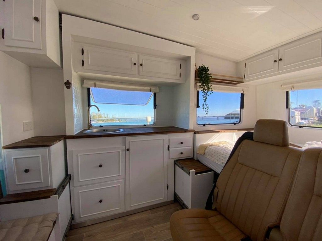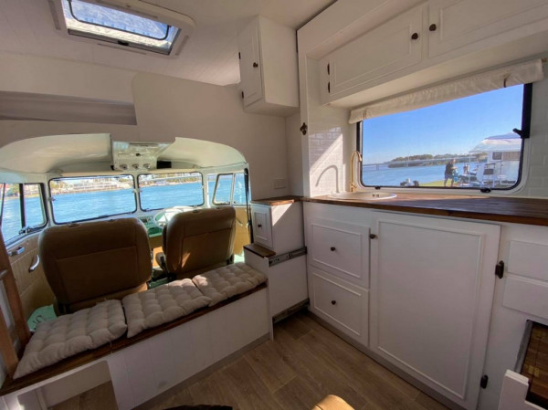 40-летний Фил Хокен, проработавший в отрасли 24 года, приобрел то, что осталось от фургона Volkswagen Kombi.Хотя фургон был опрокинут на бок и не имел ни окон, ни фар, ни интерьера, Фил решил восстановить авто, так как видел его потенциал.Фил рассказал Daily Mail Australia, что реставрация заняла 10 месяцев, и он продал дом на колесах за 149 000 долларов.Фил и его жена Джесс являются совладельцами RETRO RV и франшизы "Kombi Keg" с 57 франшизами в восьми разных странах.Восстановленный фургон не только выглядит безупречно снаружи, но и полностью оборудован для комфортного размещения четырех человек.Теперь в нем есть электронная автоматизированная выдвижная кухня, 2,5-литровый двигатель от Subaru Forester, пятиступенчатая коробка передач Subaru-gears, холодильник, две двуспальные кровати и площадка для барбекю с двумя пивными кранами.Другие функции включают в себя телевизор 12 В, генератор 240 в, кондиционер обратного цикла, солнечные панели мощностью 300 Вт и верхнюю камеру.Белые шкафы также выглядят роскошно и обеспечат достаточно места для хранения.