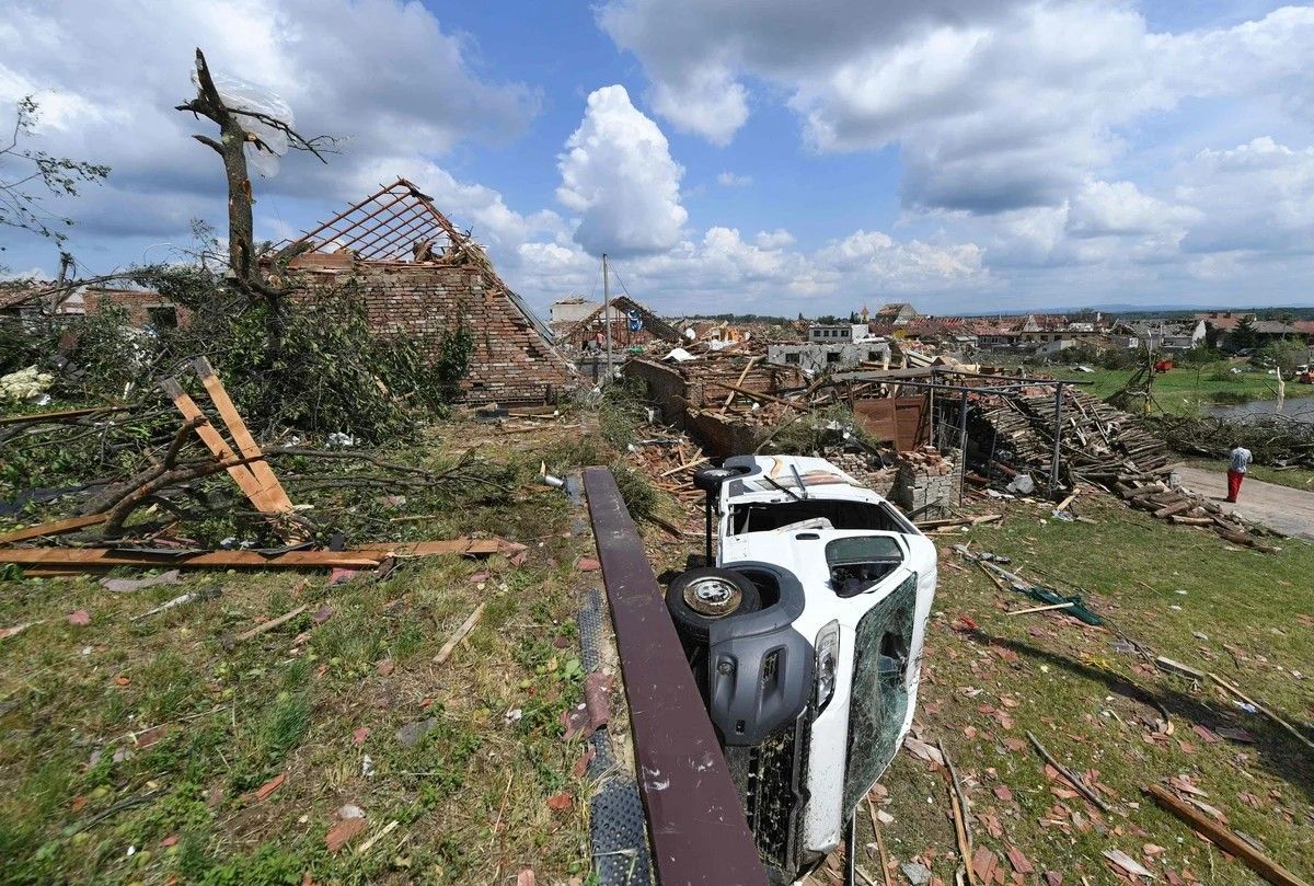 Мощный торнадо обрушился вечером 24 июня на Южноморавский край Чехии. Стихия имела четвертую степень из пяти, порывы ветра достигали 332 км/ч, а размер града достигал 10 сантиметров. Смерч разрушил дома, повалил деревья и линии электропередач, уничтожил сотни автомобилей. Наиболее пострадавшие районы выглядят как зона боевых действий. Под завалами зданий находятся сотни граждан. Пока известно о пяти погибших и 300 пострадавших.