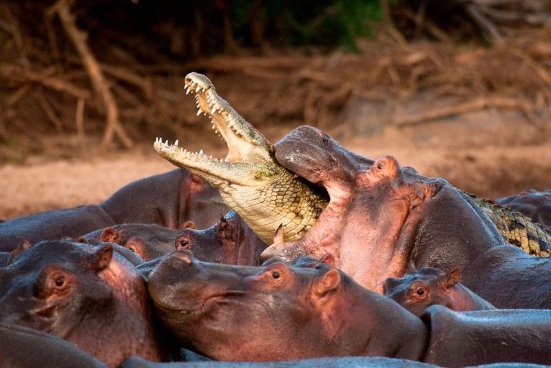 7. Бегемоты настолько опасны, что нильские крокодилы стараются держаться от них подальше