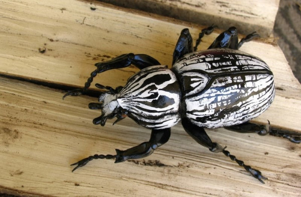 Углубления на жёстких надкрыльях насекомого образуют золотые узоры среди переливающейся глубокой сапфировой окраски.