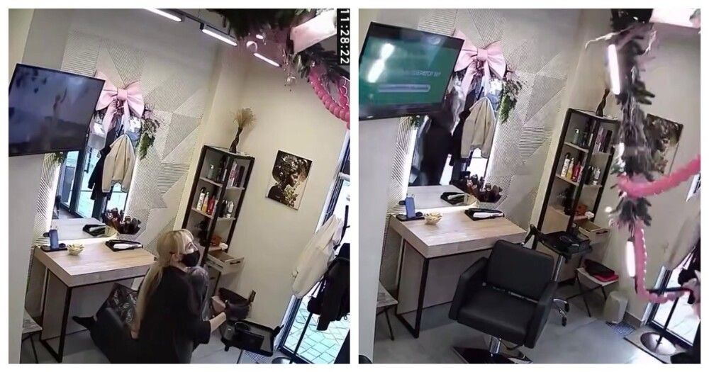 Декоратор, украшая помещение салона красоты к празднику, решила, что чем больше гирлянд и подарков на люстре, тем лучше. Итог: падение конструкции.К счастью, посетительница и работница смогли вовремя отойти.