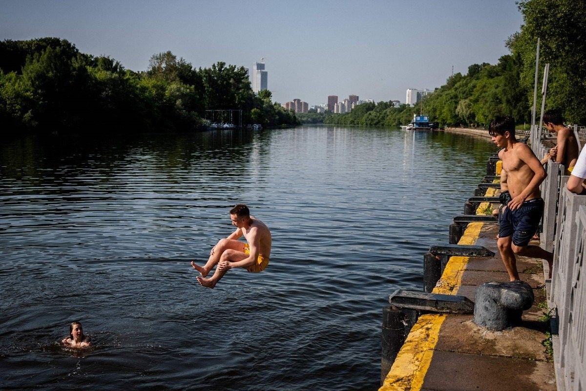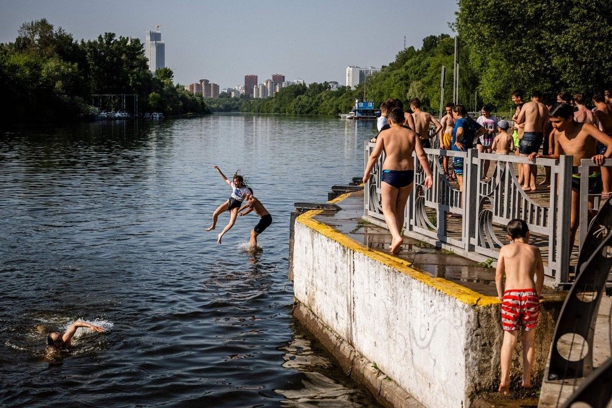 Температура воздуха в Москве поднялась до рекордной отметки за 120 лет наблюдений и достигла 36 градусов по Цельсию. Ранее самая высокая июньская температура 34,7 градуса была зафиксирована в далеком 1901 году. Москва пребывает во власти аномальной волны тепла, пришедшей со стороны Ирана. Однако синоптики предупреждают, что жаркая погода в ближайшие дни сменится мощным западным циклоном, который принесет ливни и грозы. А пока жители российской столицы ищут спасительной прохлады в парках, фонтанах и различных водоемах.