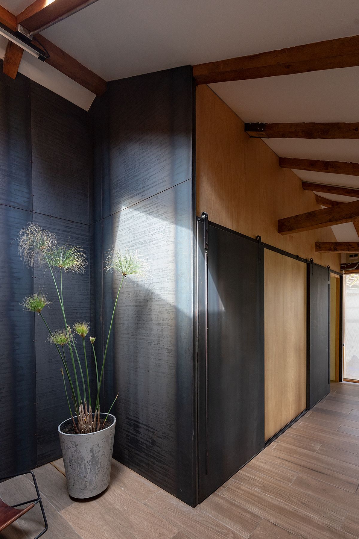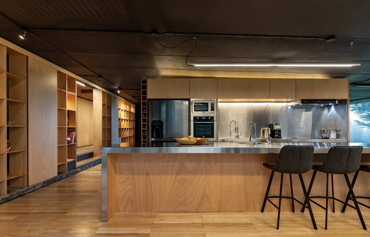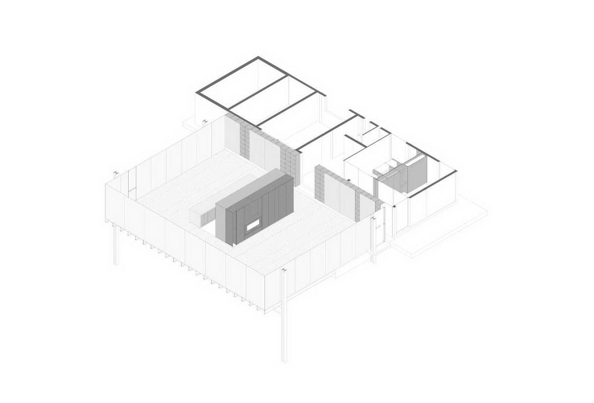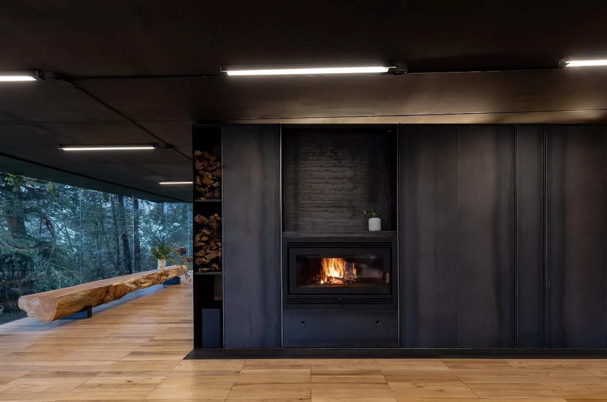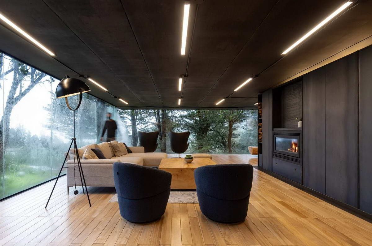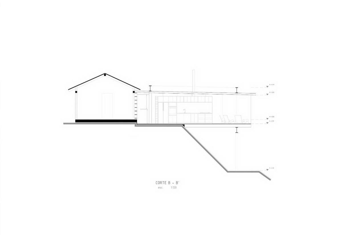 Семья использовала дом для отпуска площадью 70 квадратных метров в течение коротких и спорадических периодов времени. В здании были спальня и ванная, а также многоцелевое пространство, где могли спать две дочери семьи. Во время пандемии коронавируса владельцы решили увеличить жилище, чтобы они могли проживать в нём дольше. "Конкретный запрос заключался в том, чтобы расширить существующий дом для социальных зон, включить в него удобные и отдельные спальни для дочерей, а также воспользоваться видом на территорию, - сказали в студии. - В качестве особого требования работы должны были начаться немедленно и должны были быть построены не более чем за три месяца".Оригинальный дом расположен на зеленом участке на краю холма с видом на долину. Для пристройки фирма задумала одноэтажный застекленный бокс, который поднимается над наклонной поверхностью и поддерживается системой металлических коллон. Крыша покрыта зеленью. Поднимая надстройку, команда стремилась свести к минимуму нарушение почвы и растительности. Более того, все металлические компоненты были предварительно изготовлены, а затем собраны на месте, что сократило время строительства. Проект был выполнен в трёхмесячный срок. Наружные стены пристройки выполнены из закалённого стекла. Система тёплых полов поддерживает комфортную температуру в помещении без ущерба для прозрачности фасадов. Внутри пристройка площадью 120 квадратных метров включает кухню, столовую и гостиную.