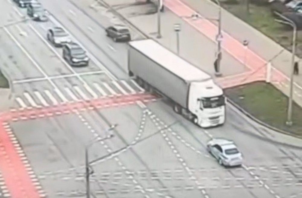 В Москве сотрудник полиции заметил грузовик на встречной полосе и попытался его остановить, но водитель не реагировал.
