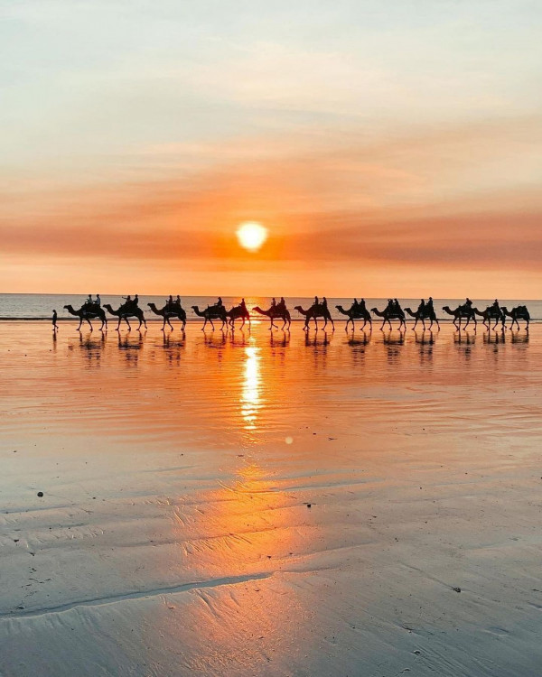 Сонный захолустный городок всего с 4402 жителями на северном побережье Западной Австралии, который находится в 24 часах езды от Перта и в 19 часах езды от Дарвина является одним из самых изолированных в стране, ставший в последние годы оживленным пляжным курортом.Здесь посетители могут полюбоваться одним из "лучших закатов в Австралии" над нетронутыми песками Кейбл-Бич или прокатиться на верблюдах вдоль берега.