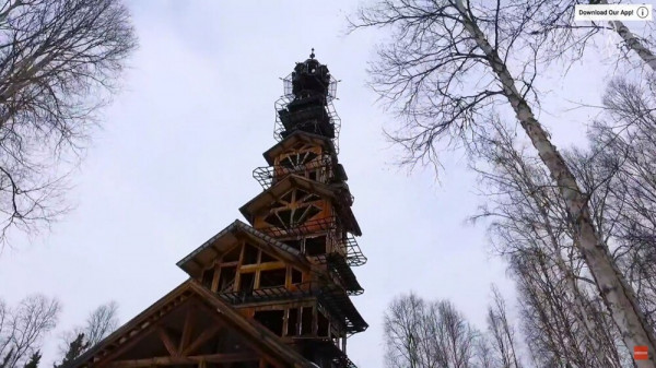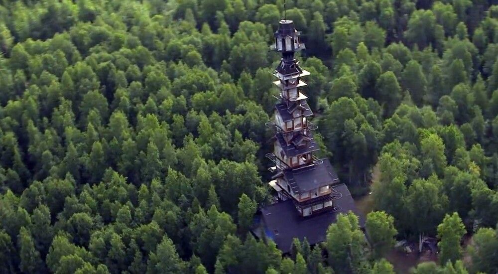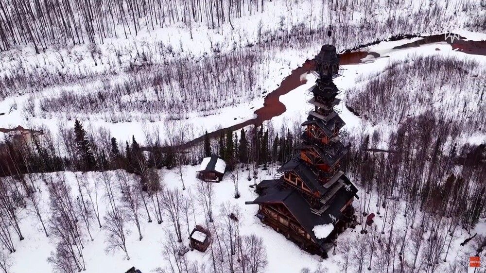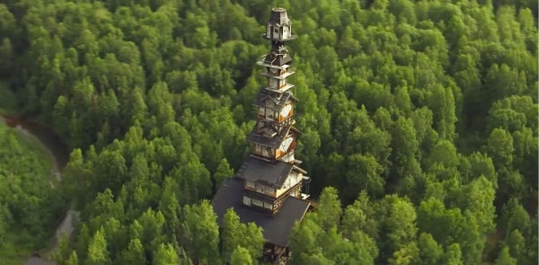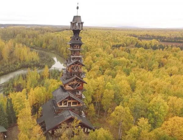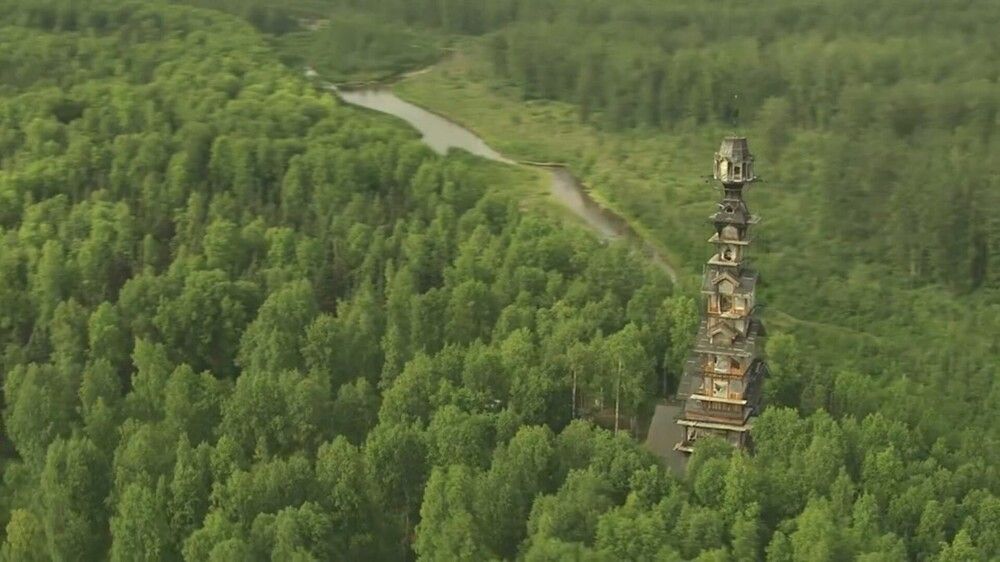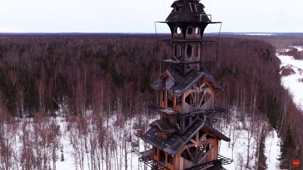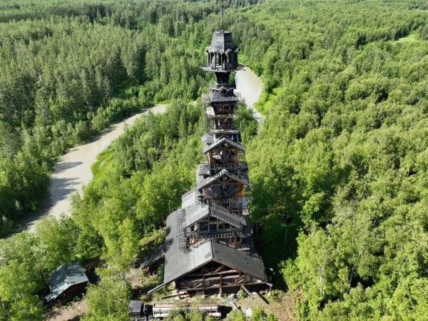 Над зеленым морем тайги возвышается странное сооружение. Издалека оно напоминает сказочную черную башню, созданную чьей-то богатой фантазией. В каком-то смысле это правда, вот только построили ее не в сказке, а на самом деле.