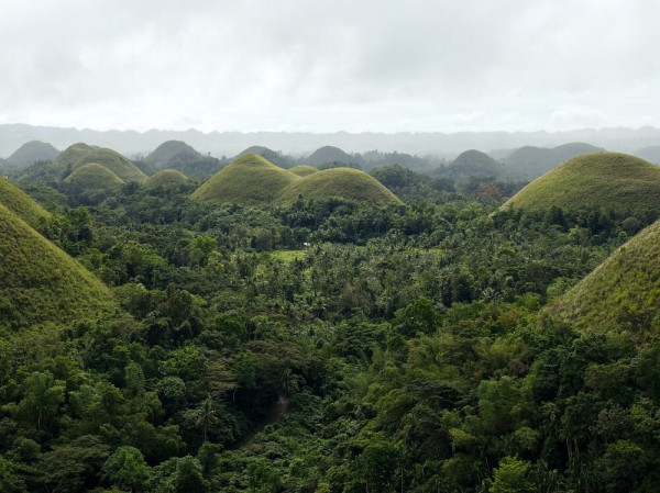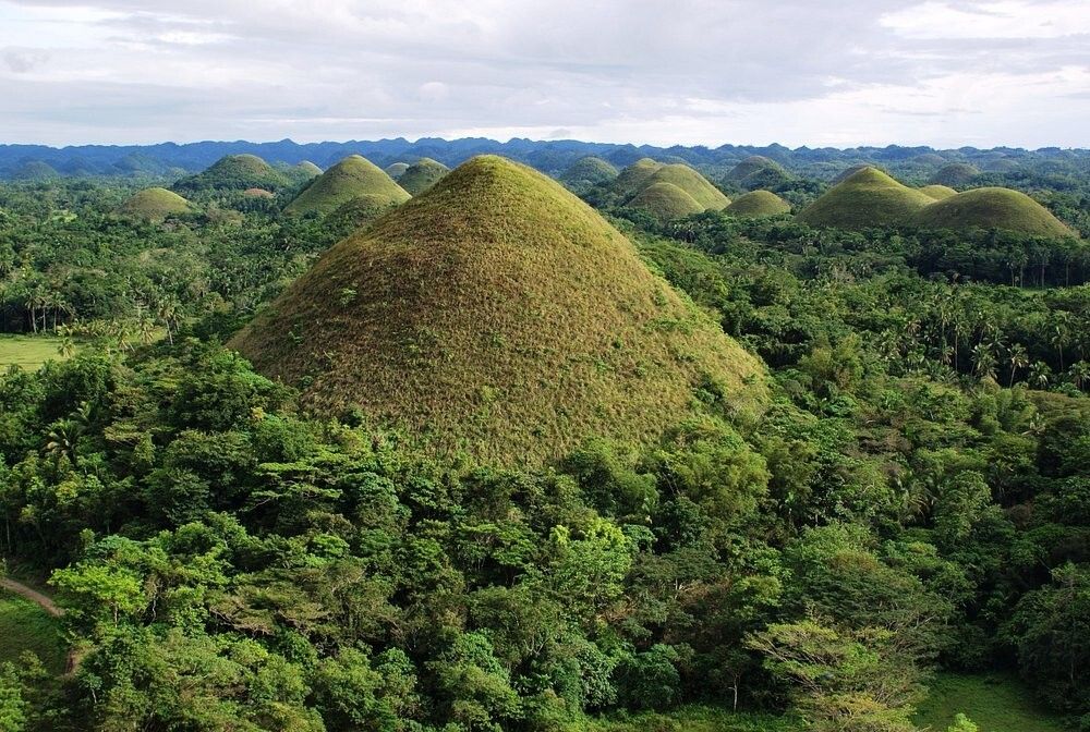 Представьте, что вы летите над филиппинским островом Бохоль в сухой сезон. Под вами раскинется сюрреалистичный пейзаж: ровные ряды идеальных конических холмов, укутанных в выжженную солнцем траву и напоминающих гигантские шоколадные трюфеля.