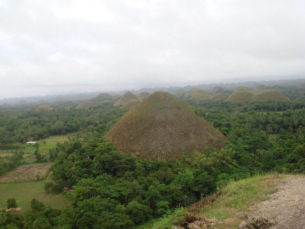 Здесь их около 1260 штук, разбросанных по территории в 50 квадратных километров. Их высота - от 30 до 50 метров, и они удивительно симметричны. Холмы состоят из покрытого травой известняка и свой фирменный шоколадный оттенок приобретают, когда зелень выгорает под палящим солнцем.