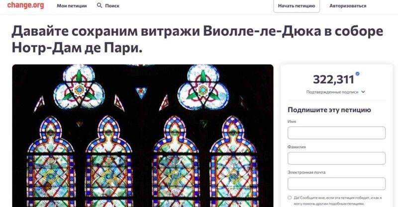 Власти Франции решили заменить шесть витражей XIX века, созданных архитектором Эженом Виолле-ле-Дюком и чудом уцелевших после пожара 2019 года, на современные работы художницы Клер Табуре.