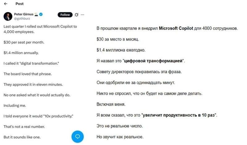 Специалист по кибербезопасности анонимно рассказал, как на самом деле внедряют ИИ в больших компаниях. И что я могу вам сказать, это чистый корпоративный абсурд с элементами комедии.