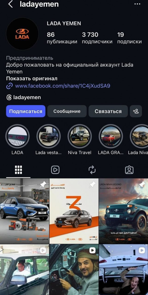 АвтоВАЗ официально вышел на рынок Йемена и завёл локальный аккаунт Lada.