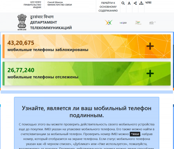 Индии портал CEIR блокирует только украденные или поддельные устройства по заявлению владельца, без массовой регистрации всех гаджетов и платы для пользователей.В