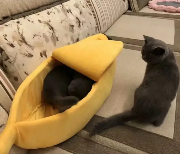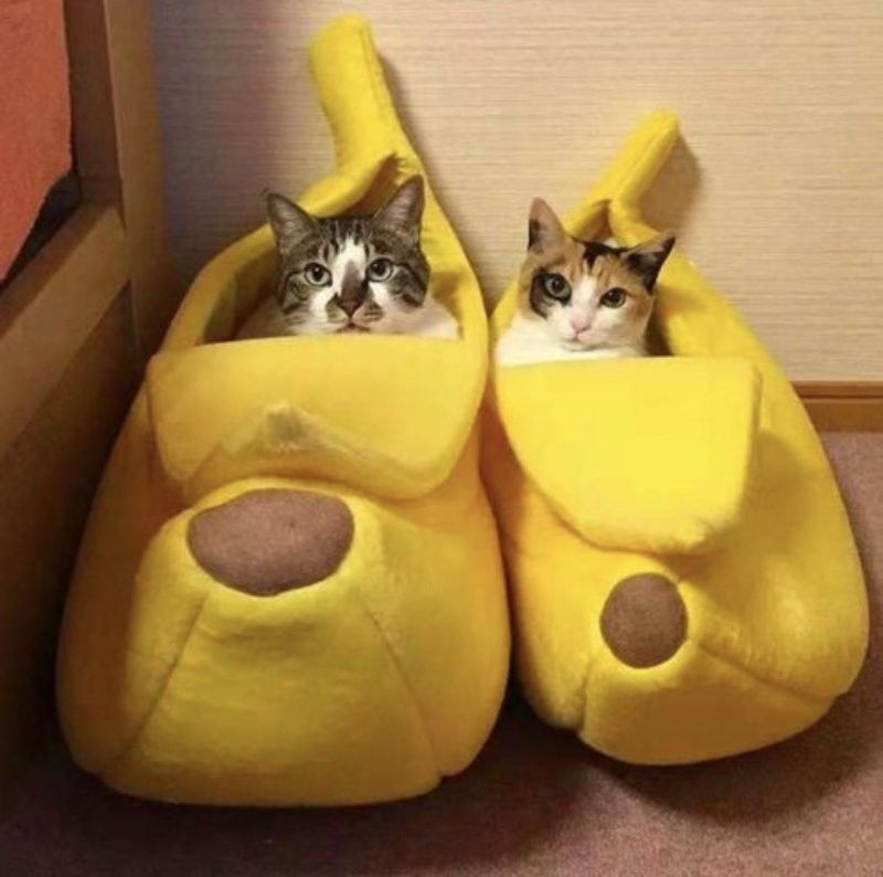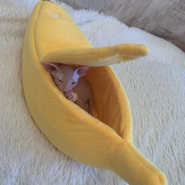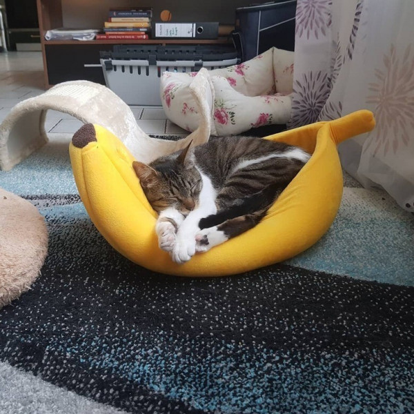 Маркетологи уже нашли ответ на этот вопрос и придумали сочную и очень уютную лежанку в форме банана. Эта фотоподборка доказывает, что такие лежанки представляют собой не просто причуду дизайна, а настоящую любовь наших усатых. Смотрите, как уютно они размещаются в нежной плюшевой кожуре, сладко спят в изгибе и вальяжно прячутся внутри плюшевого фрукта. Готовы увидеть идеальную парочку - котан и его банан?