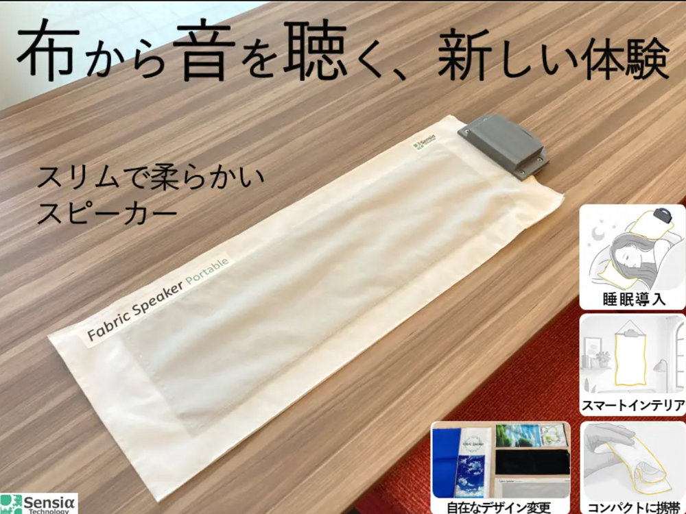 Японская компания Sensia Technology представила в декабре 2025 года одно весьма себе революционное устройство. Короче, это портативный динамик, полностью выполненный из ткани. Изобретение выглядит и ощущается как обычный кусок материала, но способно воспроизводить звук по всей своей поверхности, создавая равномерное и объёмное звучание без традиционных жёстких мембран или конусов.