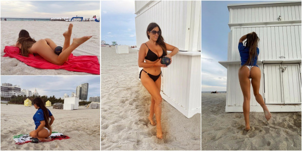 39-летняя итало-американская модель Клаудия Романи (Claudia Romani) устроила фотосессию в поддержку сборной Италии по футболу на пляже в Майами.