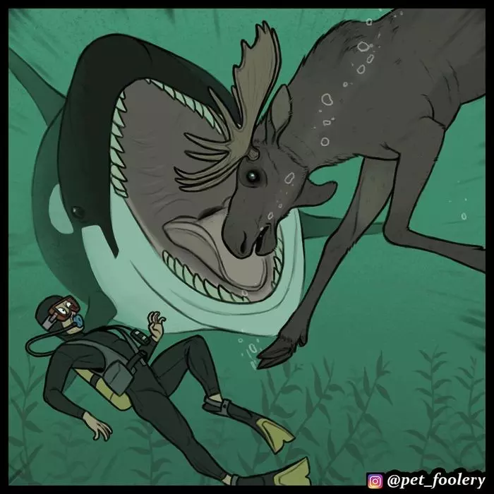 Даже одинокой косатке по силам завалить морскую свинью, афалину, или, при должном везении, даже нарвала. А это уровень большой белой акулы, самой опасной хищной рыбы на планете. Но есть один нюанс - косатка, в отличие от акулы, почти никогда не бывает одна.