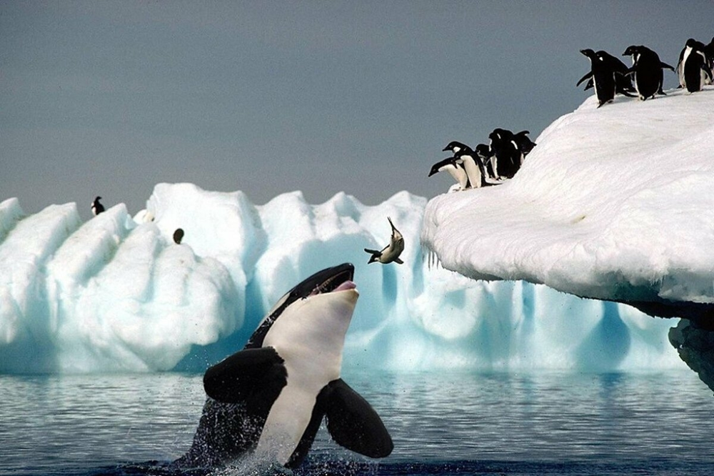 Отдельного упоминания заслуживает волновая охота, ведь во время неё хищники показывают идеальную синхронность и знание основ физики. Обнаружив льдину, на которой отдыхают несколько пингвинов/тюленей, косатки могут попытаться их выкурить оттуда. Они одновременно разгоняются и идут прямо под поверхностью воды, формируя мощную волну. Если льдина небольшая - бедных животин просто смывает в океан!