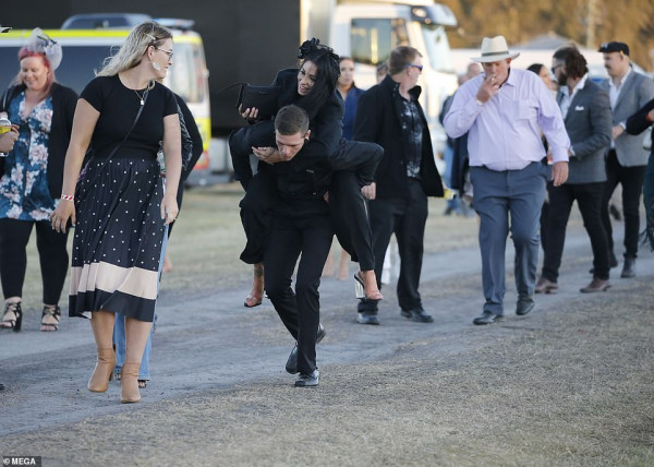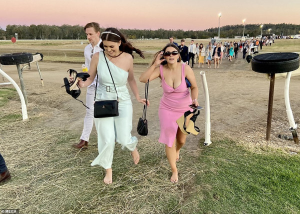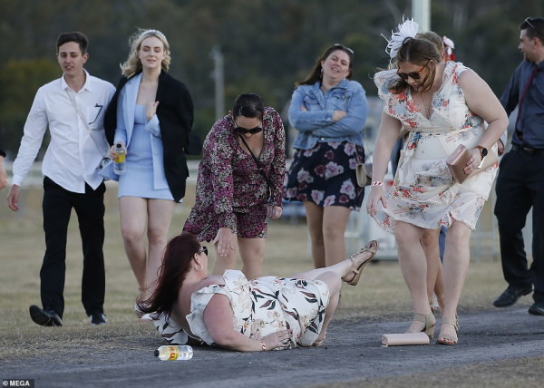 День на ипподроме Ипсвича, расположенном к югу от Брисбена, оказался слишком утомительным для некоторых посетителей, которые ездили верхом на своих товарищах, другие были полны решимости продолжать вечеринку.Некоторые гуляки проводили время на траве рядом с дорожкой, в то время как другие пытались удержаться на своих высоких каблуках.Кубок собрал около 15 000 гостей, но, несмотря на волнение, день прошел гладко, а холодная и ветреная погода не смогла испортить настроение гуляк.