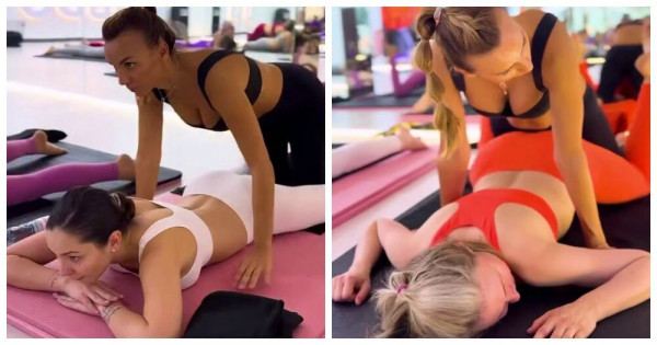 На видео девушки занимаются пилатесом, выполняя нестандартные упражнения. Со стороны движения выглядят необычно и не сразу понятно, на какие группы мышц они направлены.