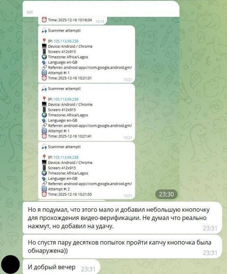 Мошенник попался на удочку и принялся упорно решать нерешаемую задачу. Он провозился с капчей больше часа, неоднократно обновляя страницу и пытаясь найти лазейку.