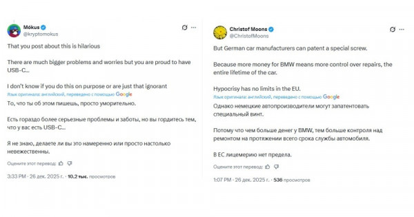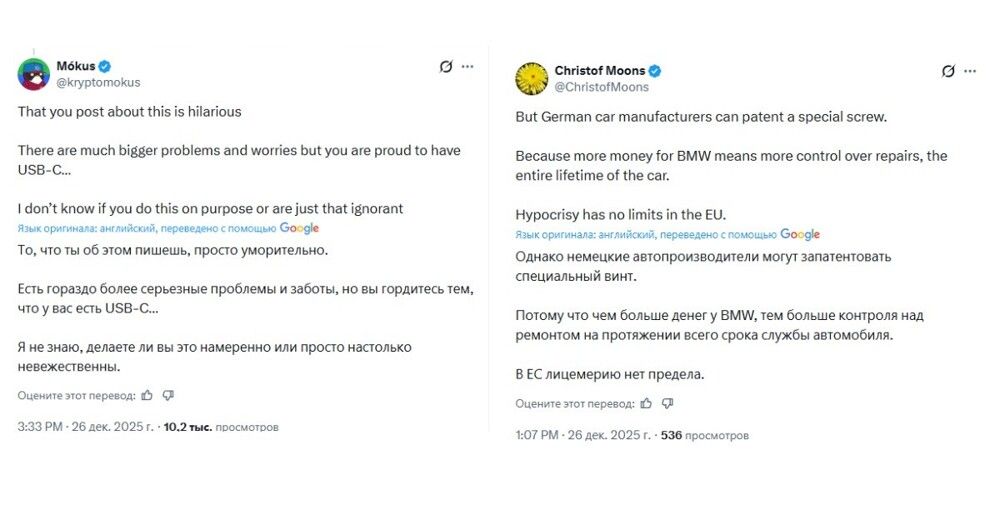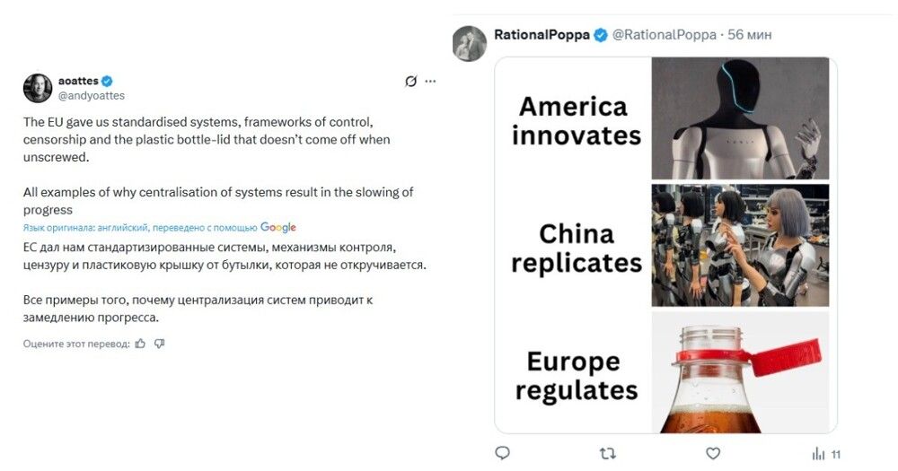 Помимо критики текста с отсылкой на нацистский лозунг, жители Европы в комментариях под постом много иронизировали над великими достижениями европейской бюрократии и обвинили власти в лицемерии с историей с автогигантом BMW, который вместо перехода на единые стандарты объявил об изобретении специального болта, чтобы ремонтировать машины могли только официальные сервисы.