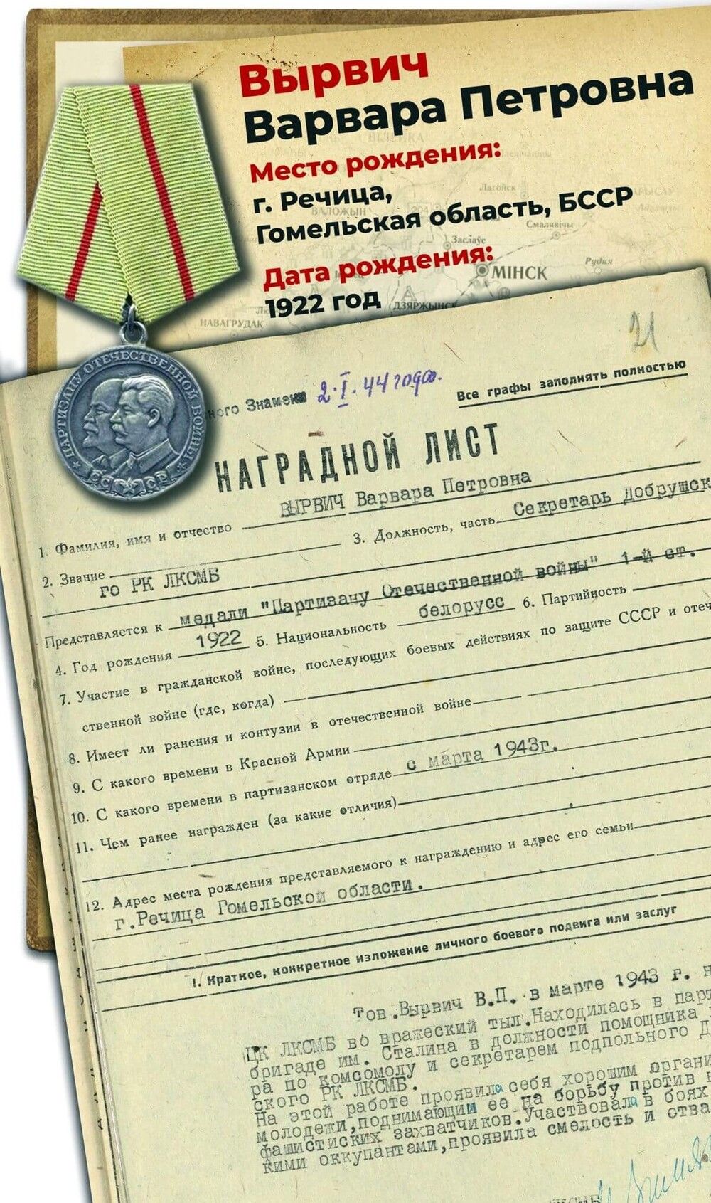 За 22-летнюю партизанку немцы отдавали 25 гектаров, 5 пудов соли и 3 тысячи марок. О судьбе неуловимой "бандитки Кати"История белорусской партизанки Варвары Петровны Вырвич (1922-1998) - это удивительный рассказ о мужестве, отваге и решимости простой девушки, которая стала грозой оккупантов и символом партизанского сопротивления на территории Белоруссии. Вырвич, известная как "бандит Катя", сумела сделать невероятное - организовать и возглавить партизанский отряд, который буквально парализовал работу оккупантов в Добрушском районе.В БОРЬБЕ ЗА РОДИНУ