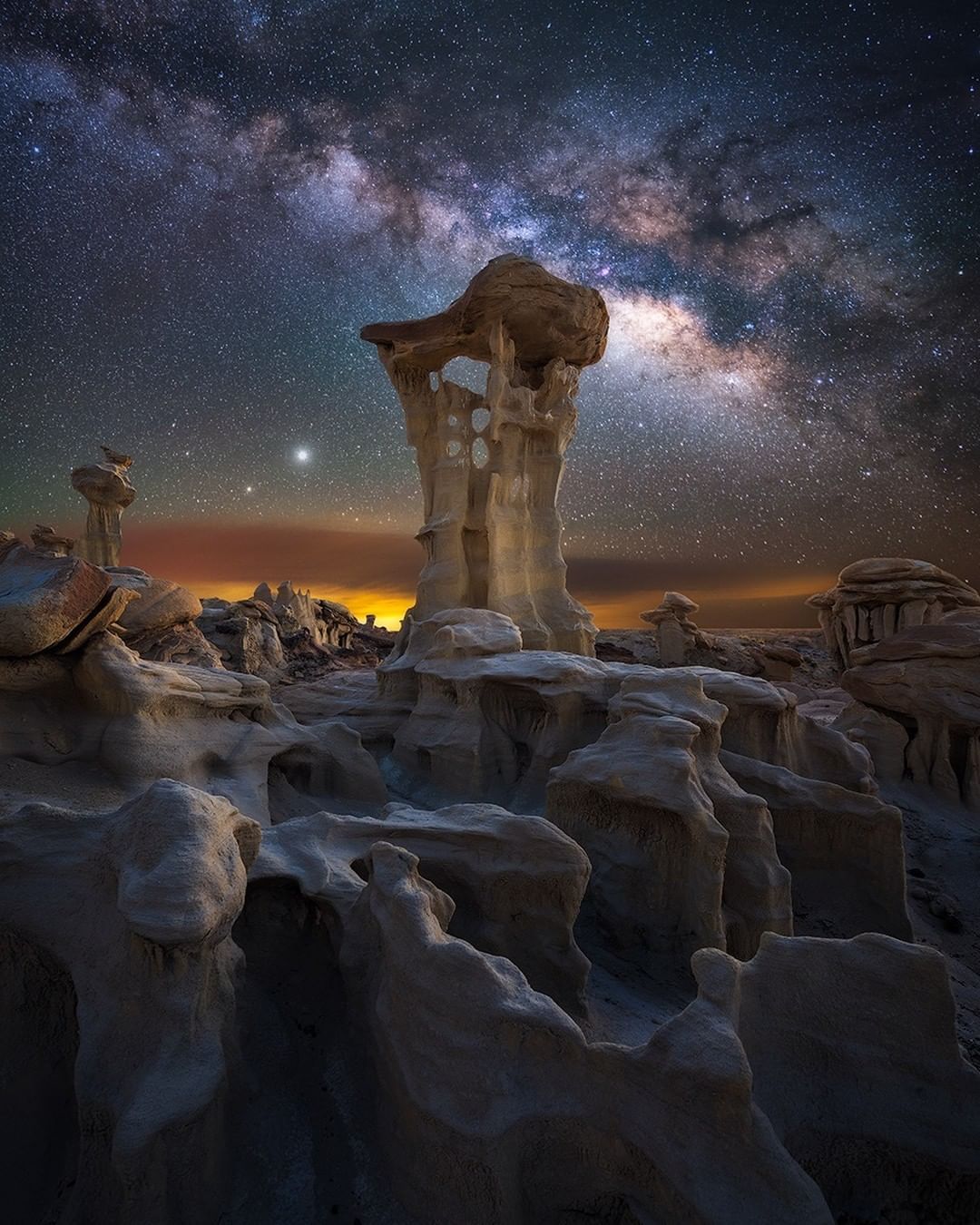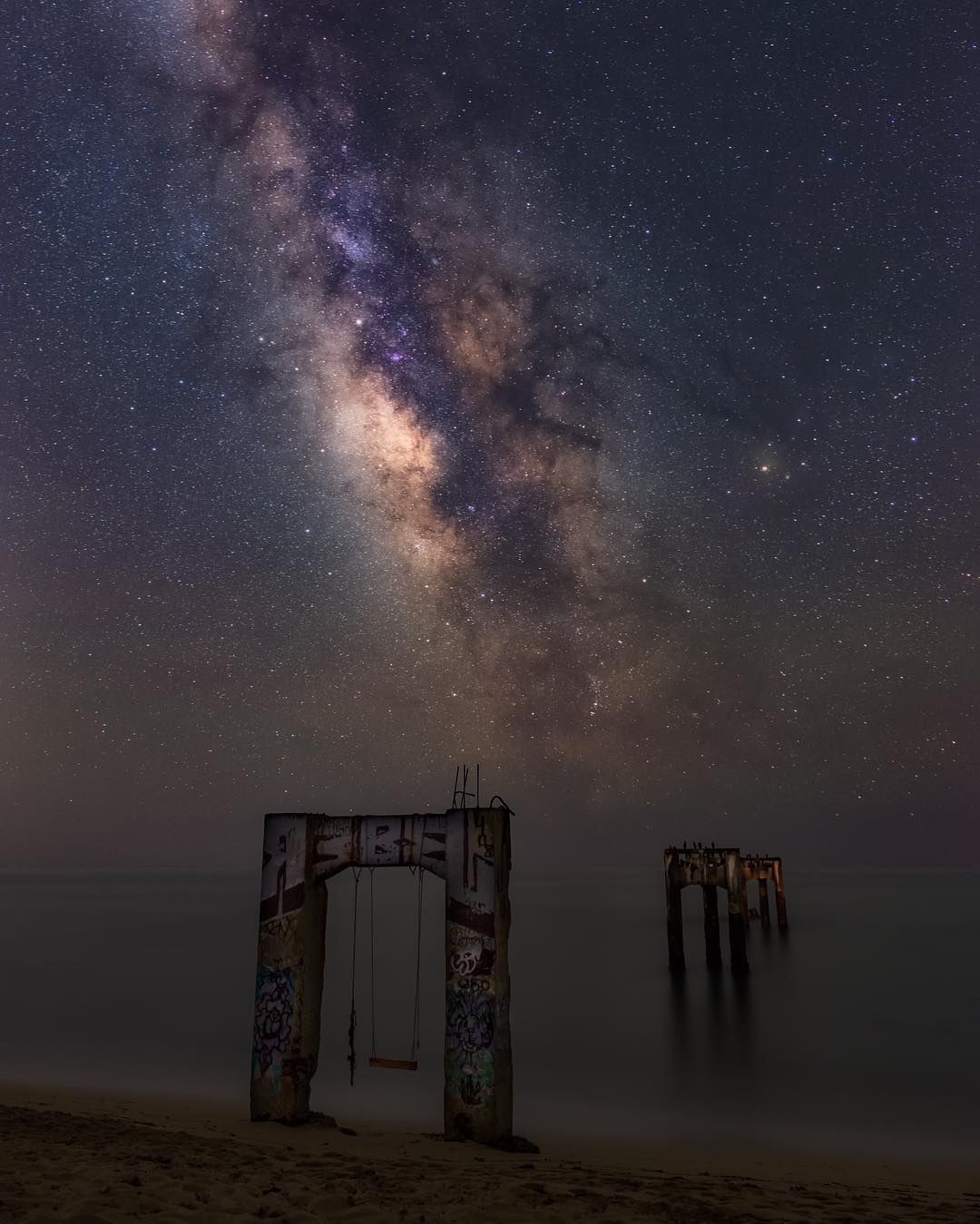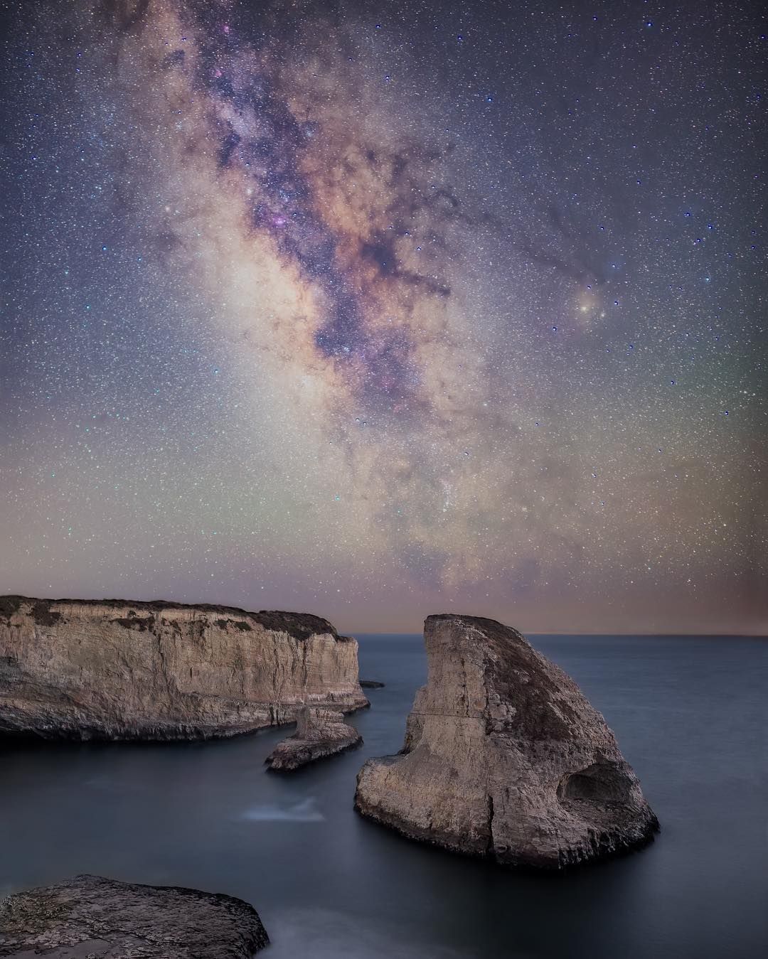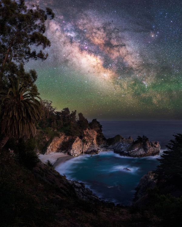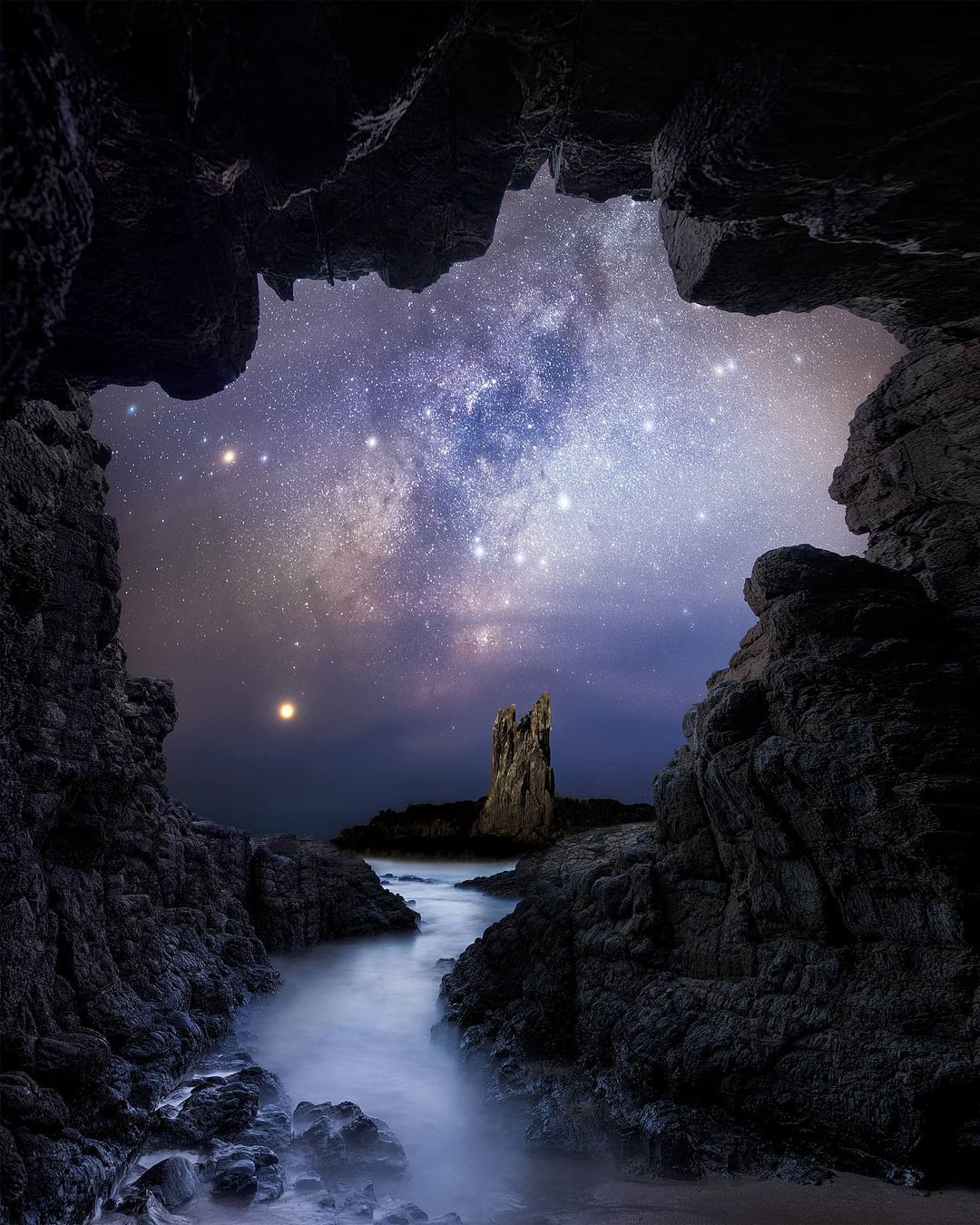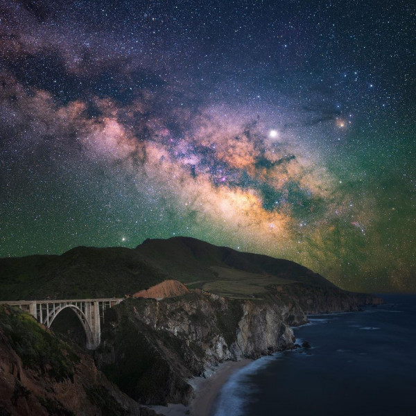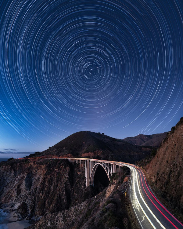 Обычно Марчин исследует районы рядом с домом. Однако три года назад парень влюбился в астрофотографию, которая привела его во многие потрясающие места: от побережья Австралии до изрезанного вулканического ландшафта Исландии.Она же привела его к попаданию в шорт-лист престижного конкурса Astronomy Photographer of the Year 2020, где гринвичская королевская обсерватория ежегодно проводит отбор лучших астрономических фотографий со всего мира.Жанр астрофотографии, конечно, кажется невероятно романтичным: сразу представляешь себе небо, усыпанное звёздами, и гигантское клубничное суперлуние. Однако на "обратной" стороне луны (так с иронией можно назвать трудоёмкий процесс астросъёмки) всё менее патетично: экваториальная монтировка, альт-азимутальная монтировка, поиски мест без засветки, ожидание холодными ночами. Для того, чтобы фотографировать deep sky объекты, нужно потрудиться."Это волнующе -видеть Млечный Путь, изгибающийся над головой в тёмном месте, и я нахожу его (Путь) захватывающим объектом для съёмки особенно потому, что современные датчики камеры могут фиксировать гораздо больше, чем наши глаза", - рассказывает Марчин.Учёные считают Млечный путь одной из старейших галактик во Вселенной, фотографы - одной из самых красивых."Ночное небо крутится вокруг Полярной звезды на Тихоокеанском побережье в Центральной Калифорнии. Это моя первая попытка сфотографировать звёздные треки, вызванные вращением Земли. Это изображение состоит из почти 3,5-часовой экспозиции (по 5 минут каждая), а я в то время старался не замерзнуть в кристально чистую, но холодную ночь в Биг-Суре", - вспоминает Марчин.Зайонтс любит снимать в районе моста Биксби в Калифорнии: у фотографа есть интересная работа, на которой с длинной выдержкой проносятся машины, и запечатлены также головокружительные треки звёзд."Я так рад быть номинированным второй год подряд! Действительно горжусь тем, что моя работа включена в число таких замечательных фотографий. Я сделал эту фотографию в прошлом году на побережье Австралии, когда путешествия ещё были возможны, и у меня была возможность посетить Сидней в деловой поездке. Чтобы сделать фотографию, я сел на поезд из Сиднея в прибрежный город Киама. Как только солнце село, пробрался в маленькую пещеру и несколько часов ждал, когда появится Млечный Путь. Не знакомый с Южным полушарием, я был удивлен, когда вскоре появился Юпитер", - вспоминает Марчин.