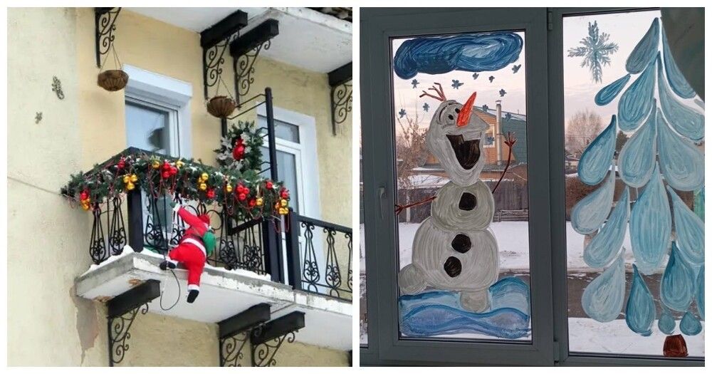 30 примеров новогодних окон и балконов, ставших произведениями искусства