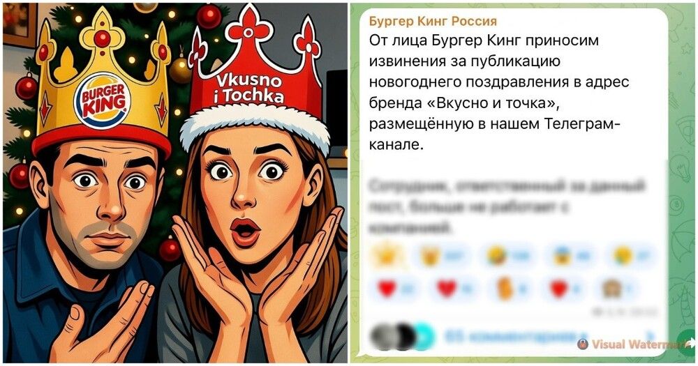 В ночь на 1 января 2026 года официальный Telegram-канал бренда опубликовал неожиданное поздравление в адрес "Вкусно - и точка". Пост был тёплым и ироничным: разные мы, но нас объединяет желание вкусно кормить гостей, и в новом году предлагаем не ссориться, а дружить. "Мы - с огнём. Вы - с точкой. Главное, чтобы всем было вкусно".