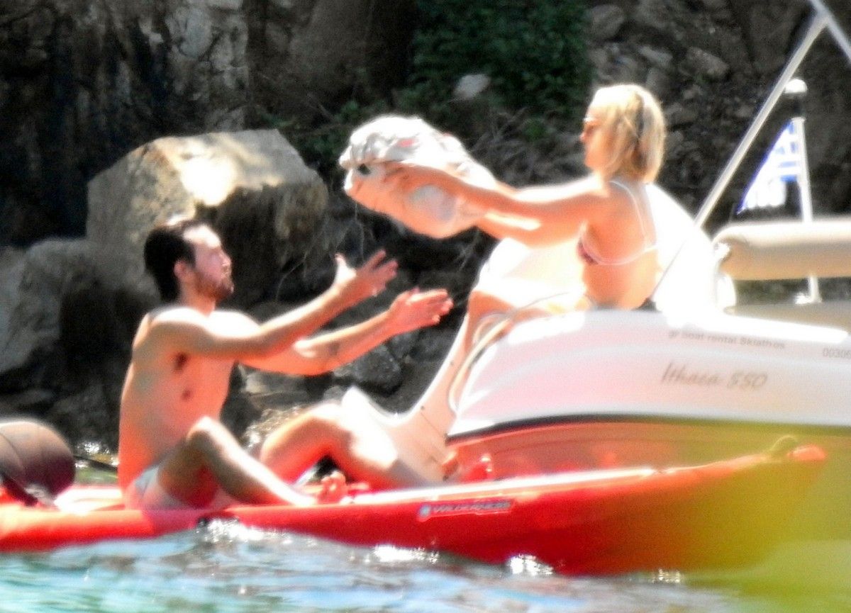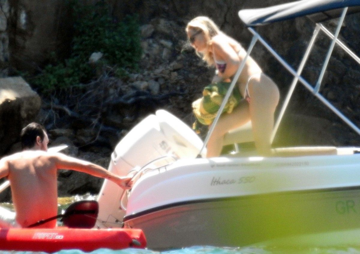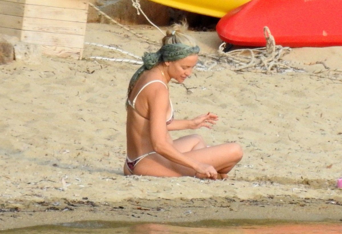 42-летняя американская актриса, кинорежиссёр, сценарист и продюсер Кейт Хадсон (Kate Hudson) отдыхает с друзьями на пляже в Греции.