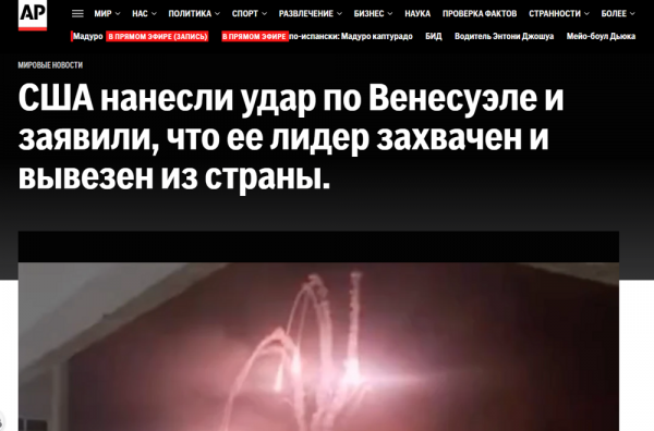 Захват Николаса Мадуро и его супруги Силии Флорес силами американского спецназа - это не просто полицейская операция, а дерзкий вызов всей системе международных отношений, где право сильного официально подменило собой Устав ООН.Нападение на столицу Венесуэлы началось в