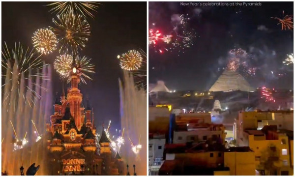 Большой сборник видео, как праздновали Новый год в разных городах и странах можно посмотреть тут, а в этом посте пара красочных роликов из парижского Диснейленда и из египетской Гизы.