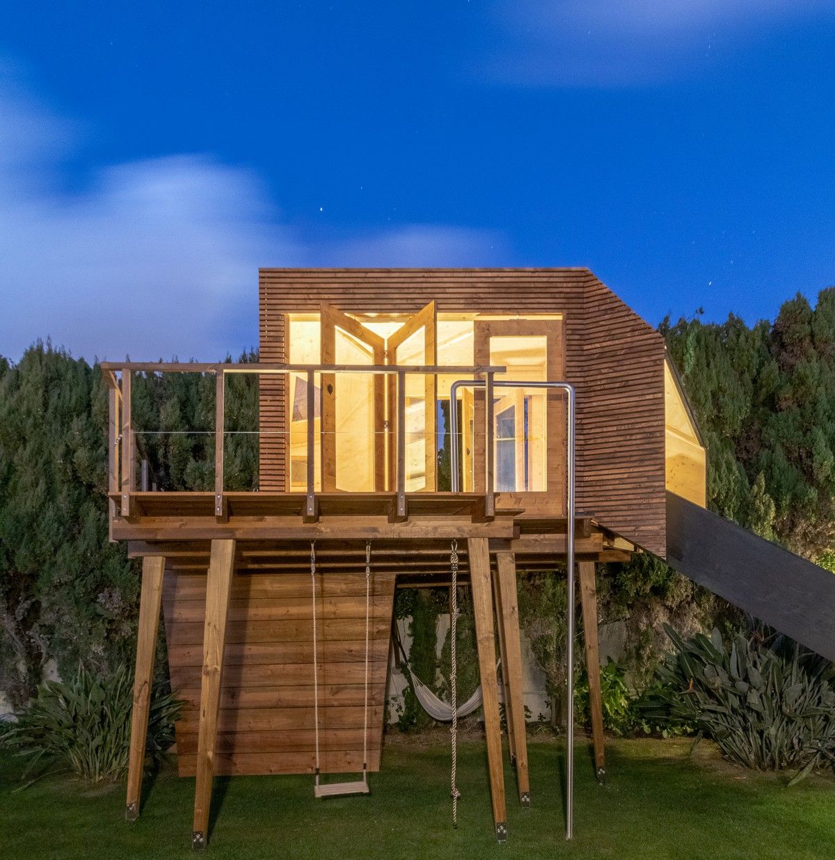 Проект "Дом на дереве Кассиопея" (Cassiopeia Treehouse) является воплощением мечты каждого ребенка о Доме на дереве и представляет собой детский игровой комплекс, выполненный из дерева. Фантастическую мечту детей реализовала студия Madeiguincho, построив в 2020 году в прибрежном курортном городке Кашкайш, Португалия, этот удивительный детский мини-городок.