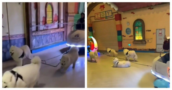 Пёс в упряжке решил, что его рабочий день окончен и прилёг отдохнуть.