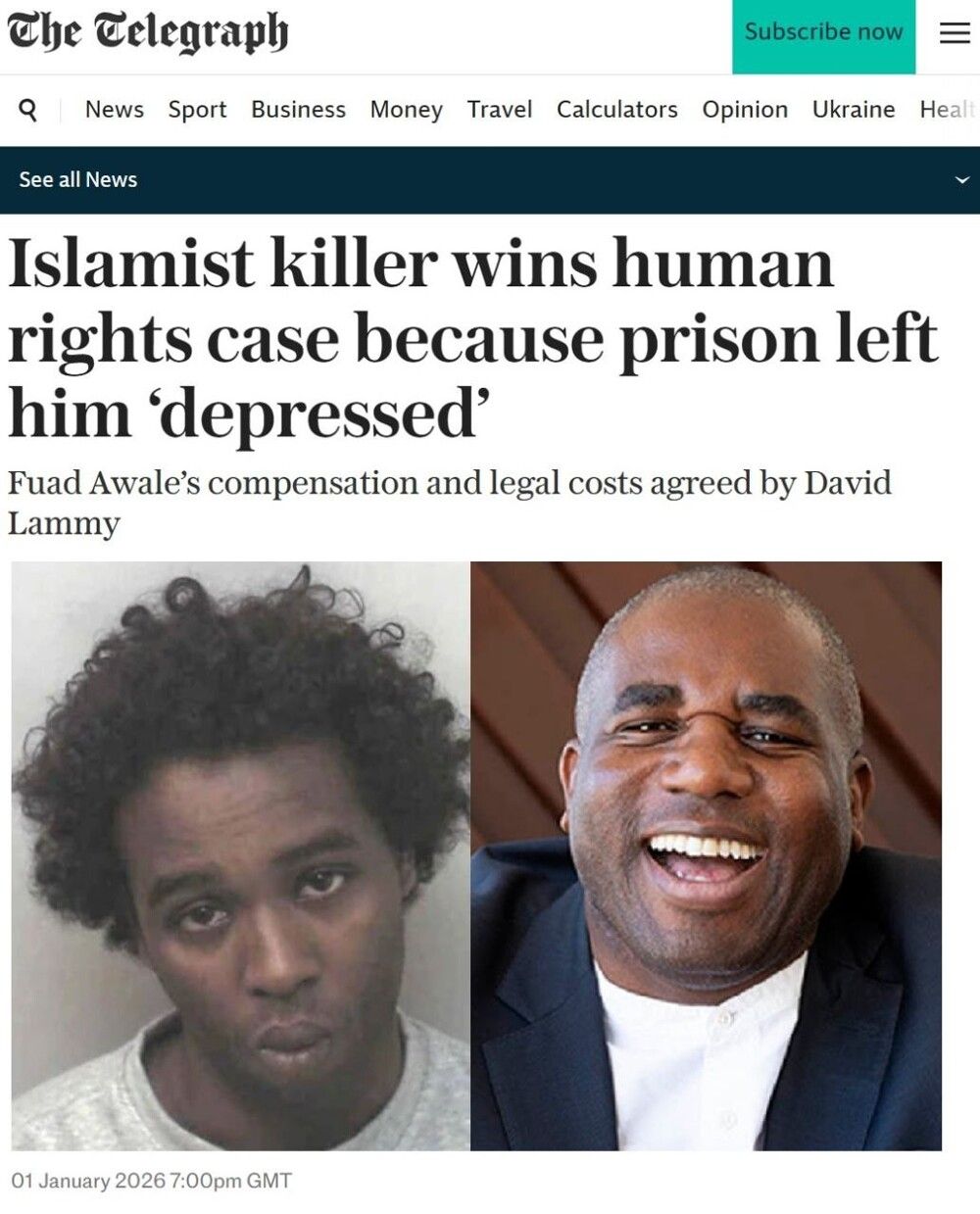 Исламист Фуад Авале, осуждённый за двойное убийство и захват заложника в тюрьме, получил от налогоплательщиков около 240 тысяч фунтов. Министр юстиции Дэвид Лэмми согласился выплатить компенсацию и покрыть судебные издержки после решения суда.Авале отбывает пожизненное за расстрел двух подростков в 2011 году. Суд назвал это ужасным преступлением и приговорил его к 38 годам тюрьмы. В тюрьме ему стало скучно и он с сокамерником взял надзирателя в заложники, угрожал убийством и требовал освобождения радикального проповедника Абу Катада.