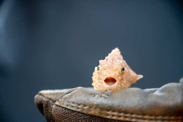 Есть ли рыба беззащитней круглопёра? Если и да, то найти такую непросто. Маленькая, не больше 7 сантиметров в длину, рыбка плоха абсолютно во всём. Её маленькая бугристая броня спасёт разве что от особо кусачих креветок, зато взамен портит обтекаемость своей хозяйки, которая и так не на высоте из-за странной формы тела. С таким набором остаётся вообще непонятным - а как выживать?Равно как и всем остальным медленным созданиям: притворившись камушком! В случае нашего круглопёра - буквально. Бугристые пластины, заменяющие рыбёшке чешую, помогают ей маскироваться на любом неоднородном ландшафте. От зарослей морской растительности и коралловых рифов до скалистых берегов вулканических островов.