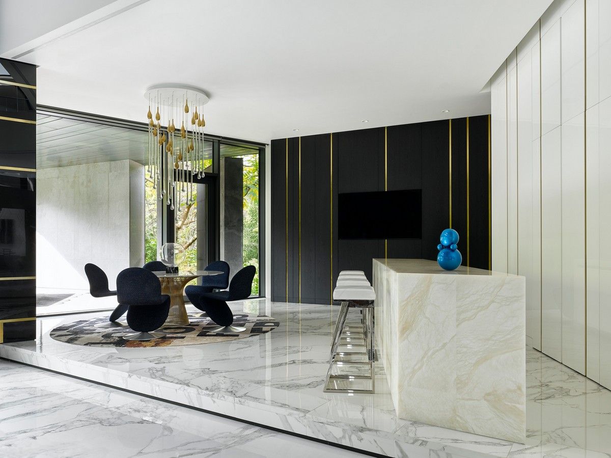 Этот современный дом в столице России, расположенный среди соснового леса на острове на берегу Москвы-реки, представляет собой революционный внешний подход к архитектурным традициям города. Дом, спроектированный южноафриканской архитектурной студией, известной продвижением возможностей модернизма 20-го века, представляет собой традицию террасы с акцентом на внешнюю ориентацию, но в контексте и климатических условиях, значительно отличающихся от происхождения этого архитектурного типа.