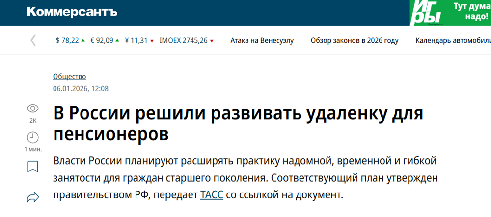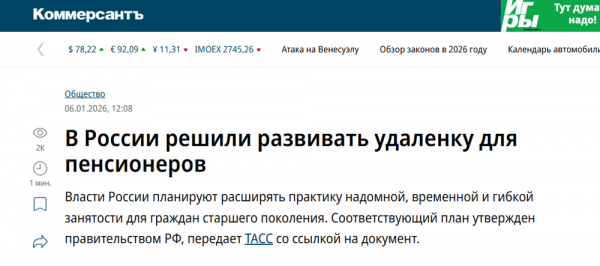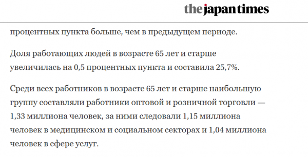Интересен парадокс рынка труда. В Японии работающий пенсионер - это национальный герой и экономическая необходимость. В России же на начало 2026 года числится около