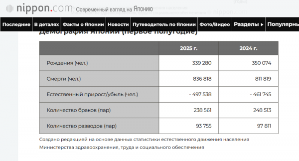 Россия в начале 2026 года находится в похожем демографическом шторме, хотя наши показатели пока выглядят чуть мягче. Если в Японии коэффициент рождаемости составляет критические
