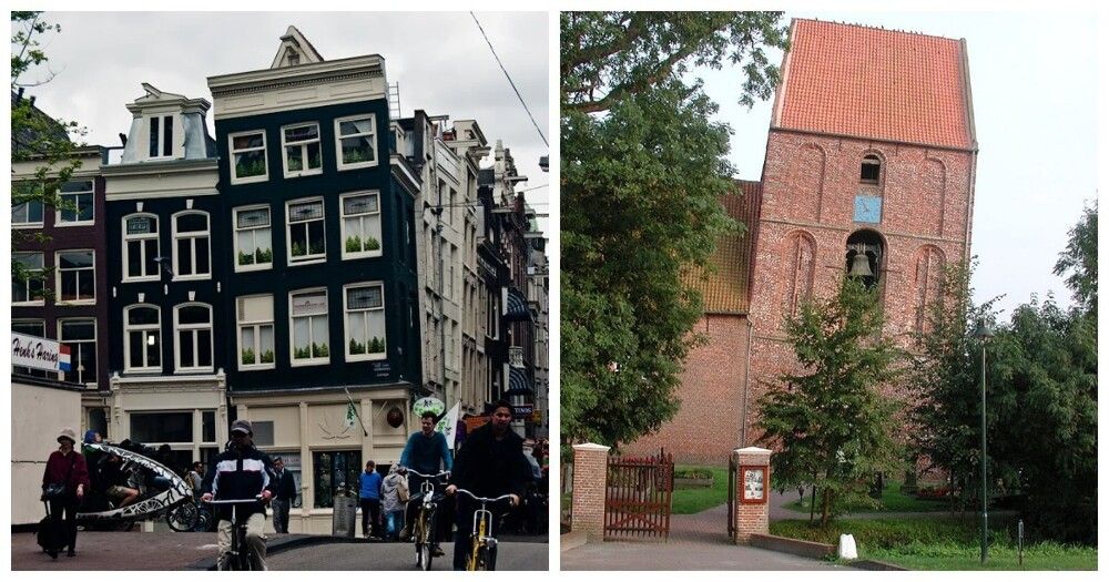 Амстердаму принадлежит множество зданий, что наклонены, заваливаются набок или просто выглядят так, будто хотят сбежать из тесного ряда соседей. Многие дома наклонены наружу потому, что были построены так специально, чтобы крупные предметы можно было поднимать на верхние этажи, не задевая фасад. Но многие другие кривые дома в городе стоят под углом из-за слабых фундаментов, пострадавших от близости каналов, создавая тот самый узнаваемый, шаткий силуэт города.