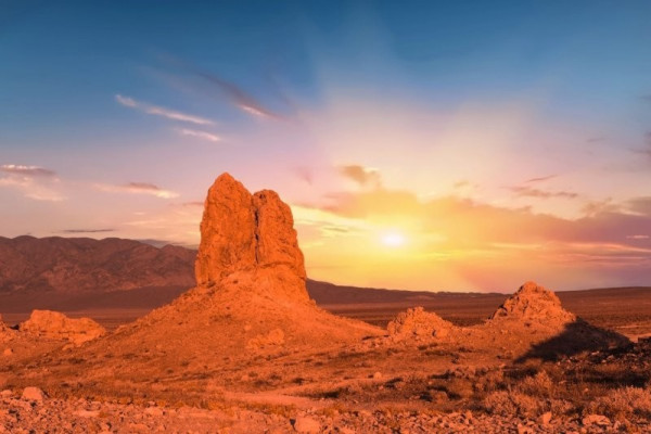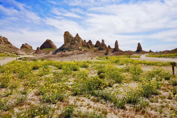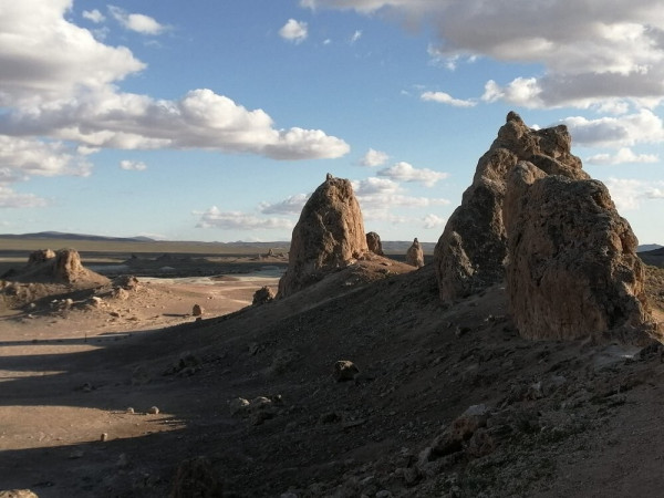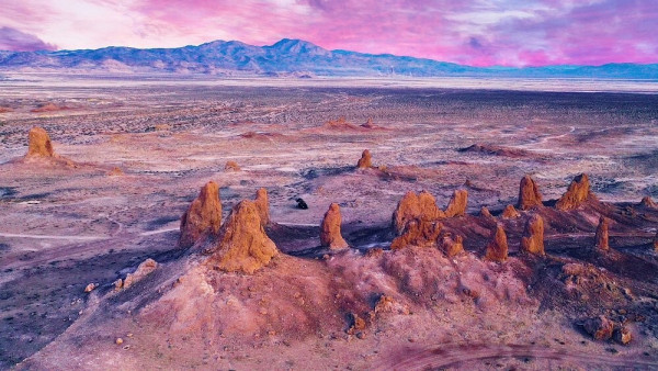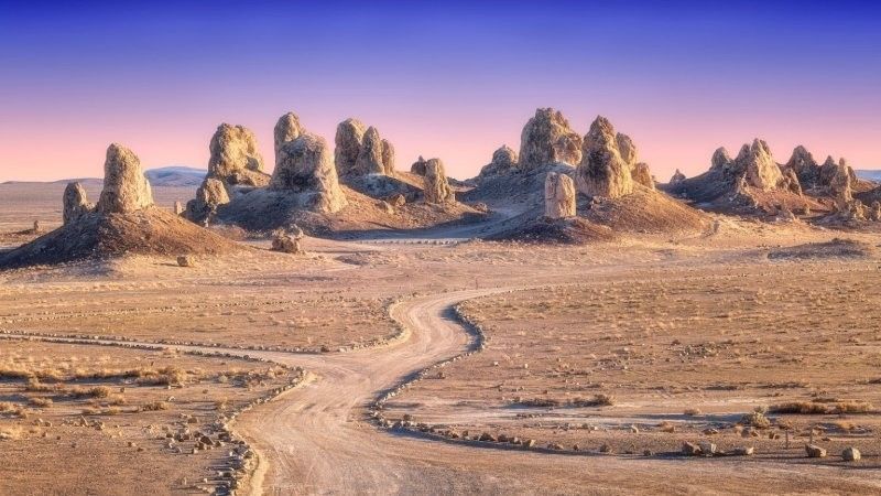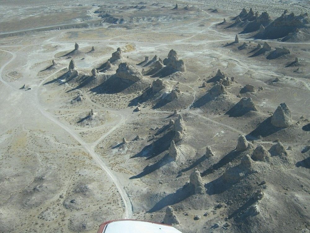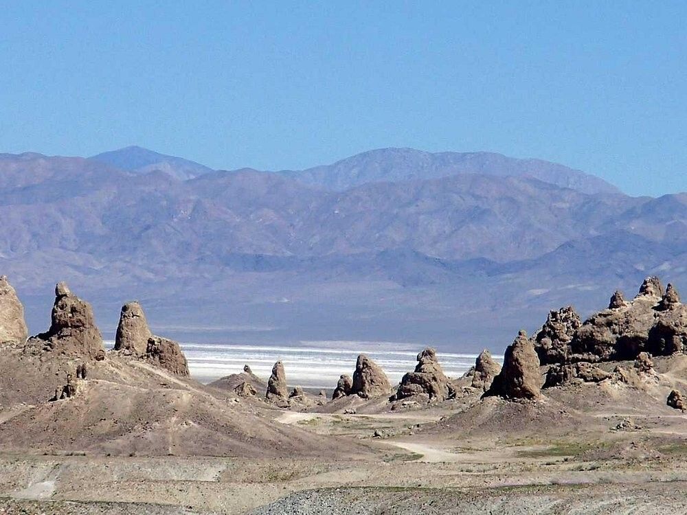 Посреди калифорнийской пустыни Мохаве, на дне высохшего озера Сирлс, застыл фантастический пейзаж - Трона Пинаклс (Trona Pinnacles).