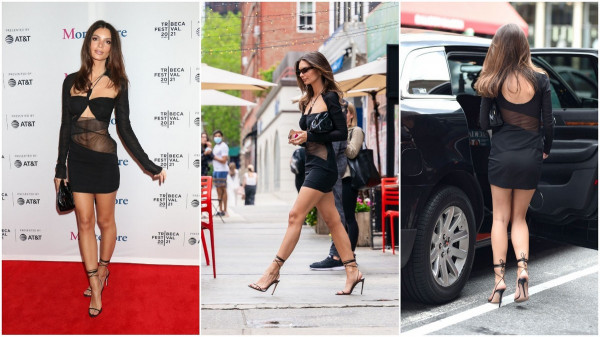 30-летняя американская модель и актриса Эмили Ратаковски (Emily Ratajkowski) в сексупльном черном платье на кинофестиваль Tribeca 2021 в Нью-Йорке.