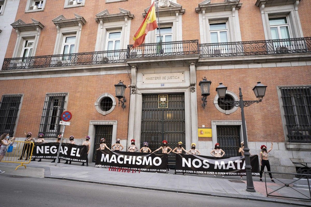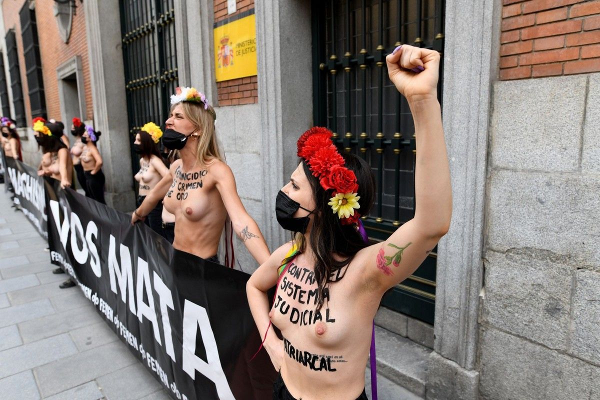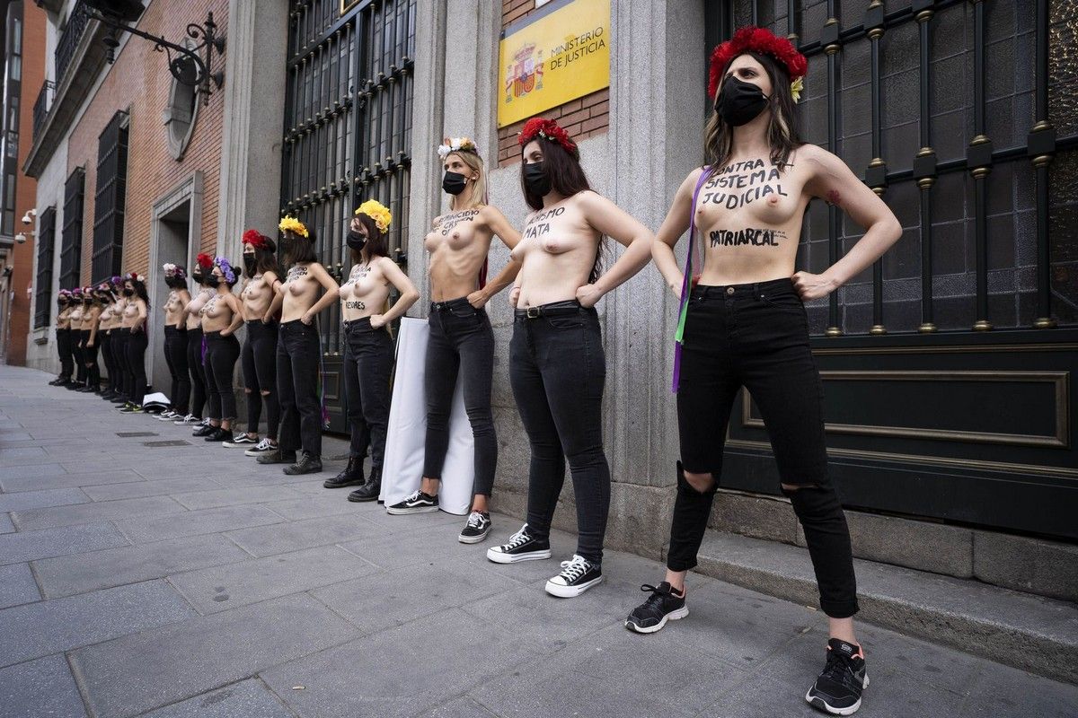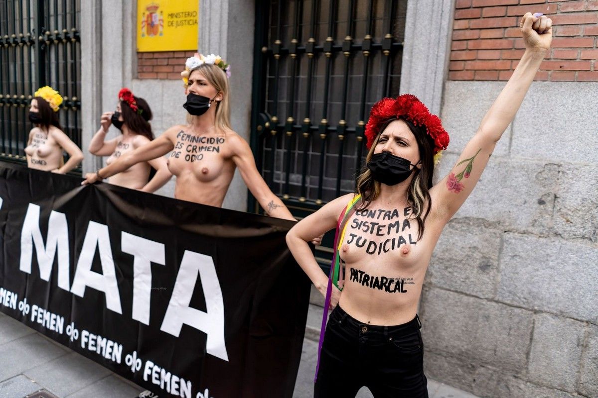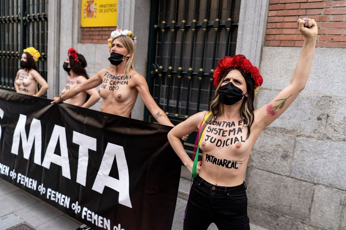 Очередную акцию протеста устроили активистки Femen 11 июня перед зданием министерства юстиции в Мадриде, Испания. Полуголые дамы требовали помилования Хуаны Ривас. Гражданка Испании была лишена родительских прав и осуждена на 2,5 года за то, что летом 2017 года в течение одного месяца скрывалась вместе со своими детьми, чтобы не отдавать их отцу, своему бывшему мужу, гражданину Италии. Экс-супруг заявил на нее в полицию. Ривас признали виновной в похищении несовершеннолетних и невыполнении распоряжений суда, которые обязывали передать детей отцу - официальному опекуну детей.