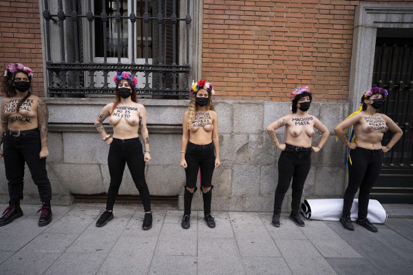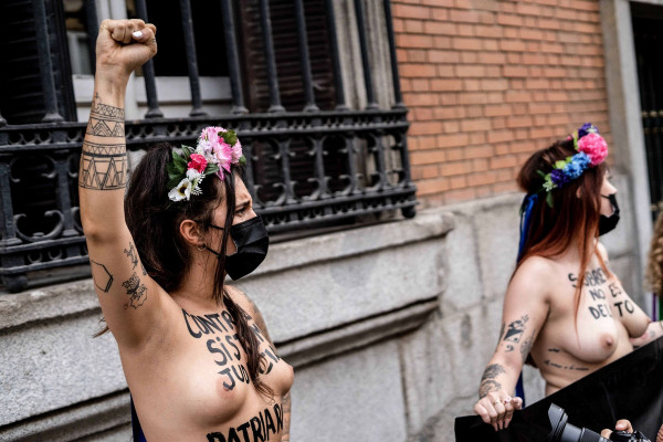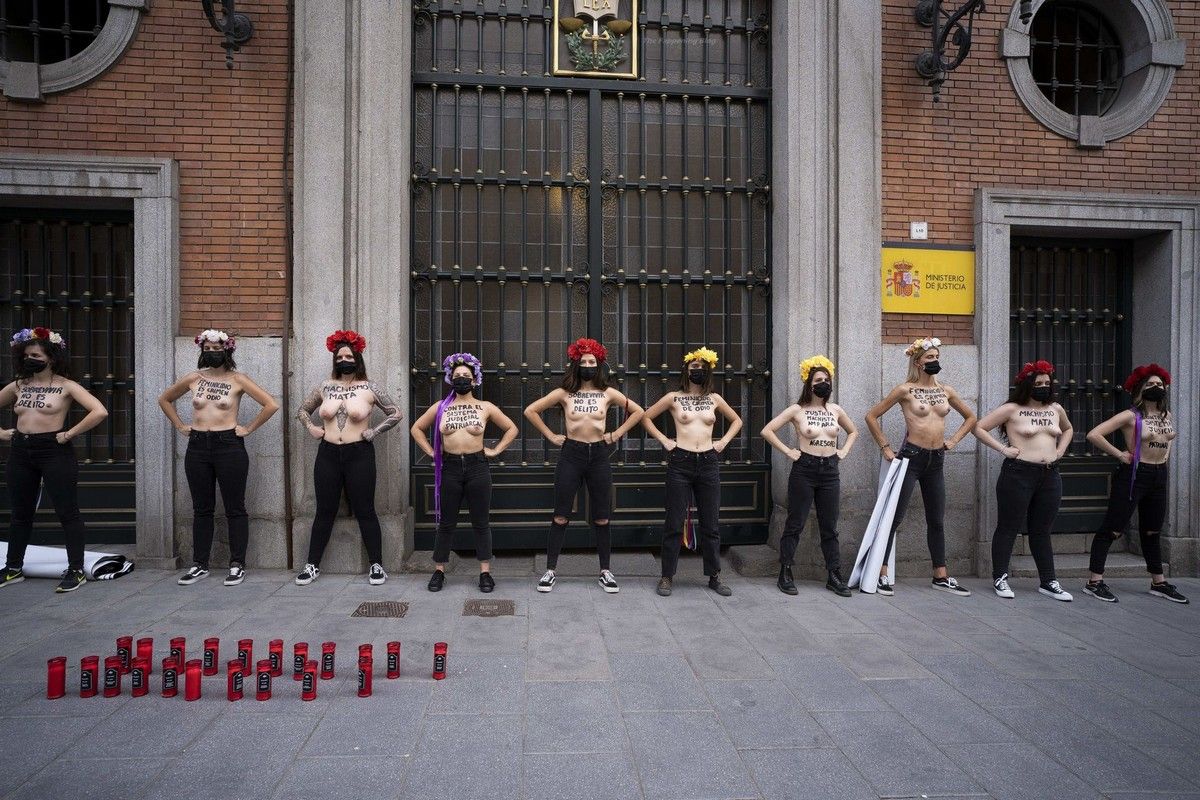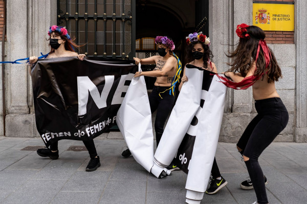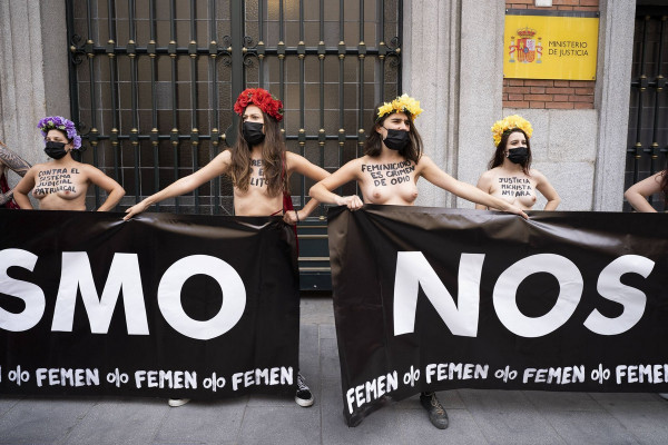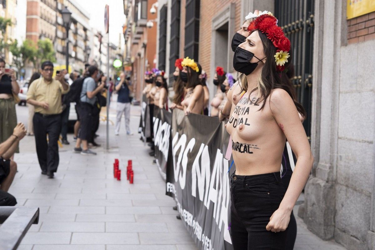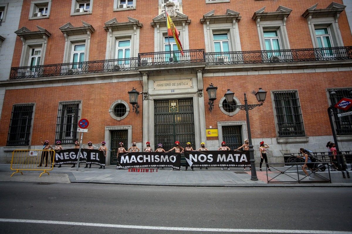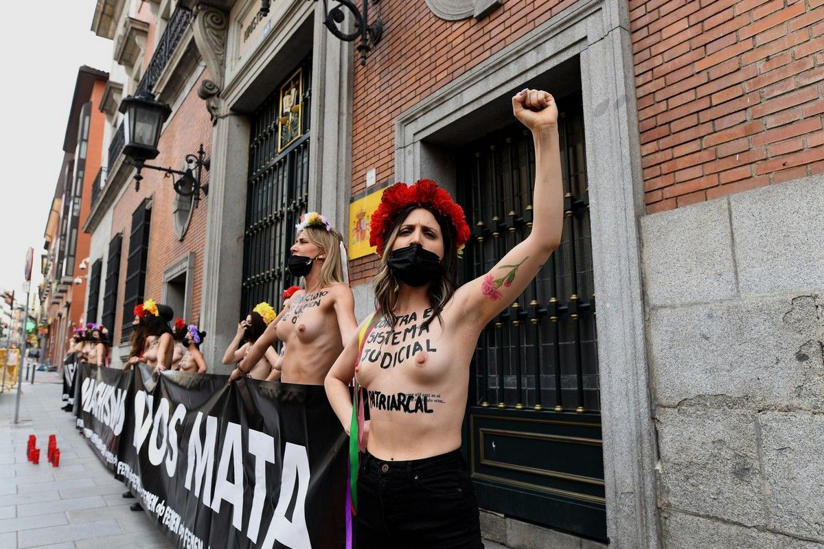 Очередную акцию протеста устроили активистки Femen 11 июня перед зданием министерства юстиции в Мадриде, Испания. Полуголые дамы требовали помилования Хуаны Ривас. Гражданка Испании была лишена родительских прав и осуждена на 2,5 года за то, что летом 2017 года в течение одного месяца скрывалась вместе со своими детьми, чтобы не отдавать их отцу, своему бывшему мужу, гражданину Италии. Экс-супруг заявил на нее в полицию. Ривас признали виновной в похищении несовершеннолетних и невыполнении распоряжений суда, которые обязывали передать детей отцу - официальному опекуну детей.