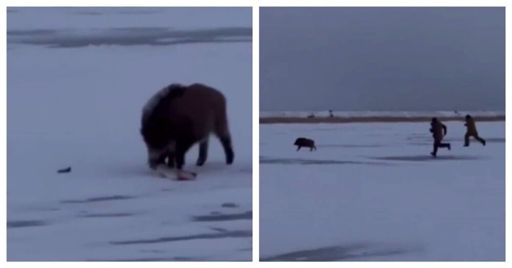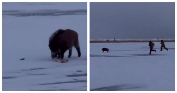 Кабан ограбил любителей зимней рыбалки