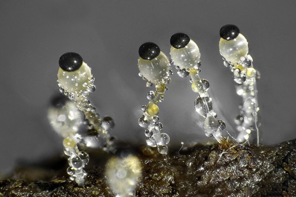 Перед вами плодовое тело гриба. Его научное имя пилоболус кристаллический (Pilobolus crystallinus), а народное название - навозная пушка.