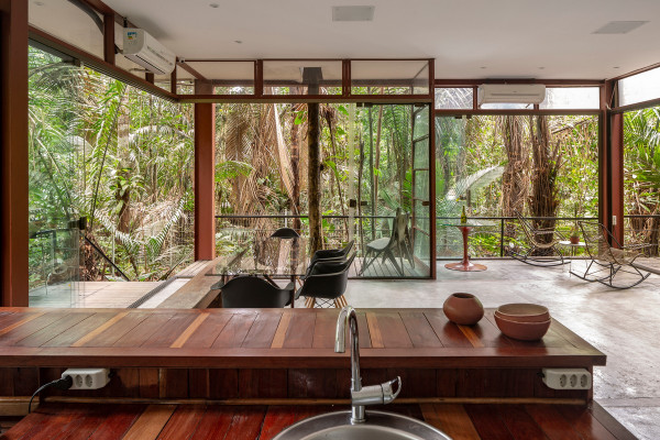 Проект "Дом в тропических лесах" (Rainforest House) разработан Arena Arquitetura и реализован в 2016 году в городе Манаус, штат Амазонас, северо-запад Бразилии. Город расположен на берегу реки Риу-Негру в окружении тропических лесов, поэтому в нем всегда много туристов, любителей путешествовать по амазонским джунглям.