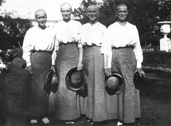 Волосы девушек сбриты из-за болезни. Это один из самых известных и пронзительных снимков четырёх великих княжон, дочерей последнего российского императора.