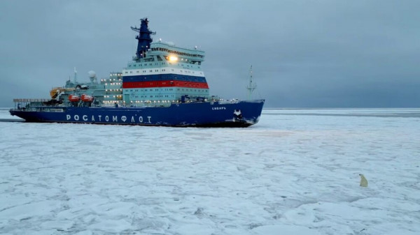 Экипаж ледокола встретил белого медведя в Карском море. Величественный хозяин Арктики стал героем видеоролика, снятого инженером по радиационной безопасности СУАЛ "Сибирь" ФГУП "Атомфлот" Анной Николайчик.
