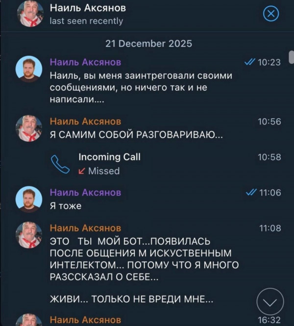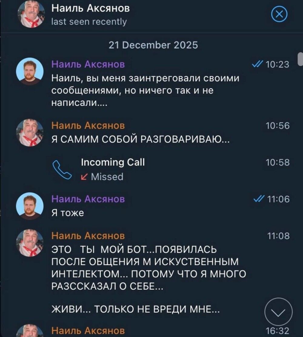 Теперь парень официально признан цифровым гомункулом. Дед искренне верит, что его откровения нейросети материализовались в виде чата, который сам сохраняет его контент. И переубеждать его бесполезно: для него это не спам, а "сингулярность на минималках". Он продолжает слать фото своего кота и рецепты настойки, милостиво позволяя "боту" существовать в этом мире. Самое главное парню - не отвечать слишком человечно, а то дед решит, что ИИ начал доминировать, и вызовет экзорциста.Вот такое вот кибер-милосердие.